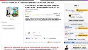 Vous désirez une console xbox kinect: très bonne affaire sur le site de la fnac qui propose le pack xbox360 4go kinect + lapin cretin partent en live pour moins de 200 euros port inclu (199 euros pour etre precis)