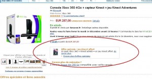 Si vous etes 2 à vouloir un capteur Kinect , un bon plan peut etre d’acheter en groupé les 2 kinect chez auchan le 18 ou 19 decembre , où le magasin propose 50% de remise en carte fidelite sur le 2eme accessoire