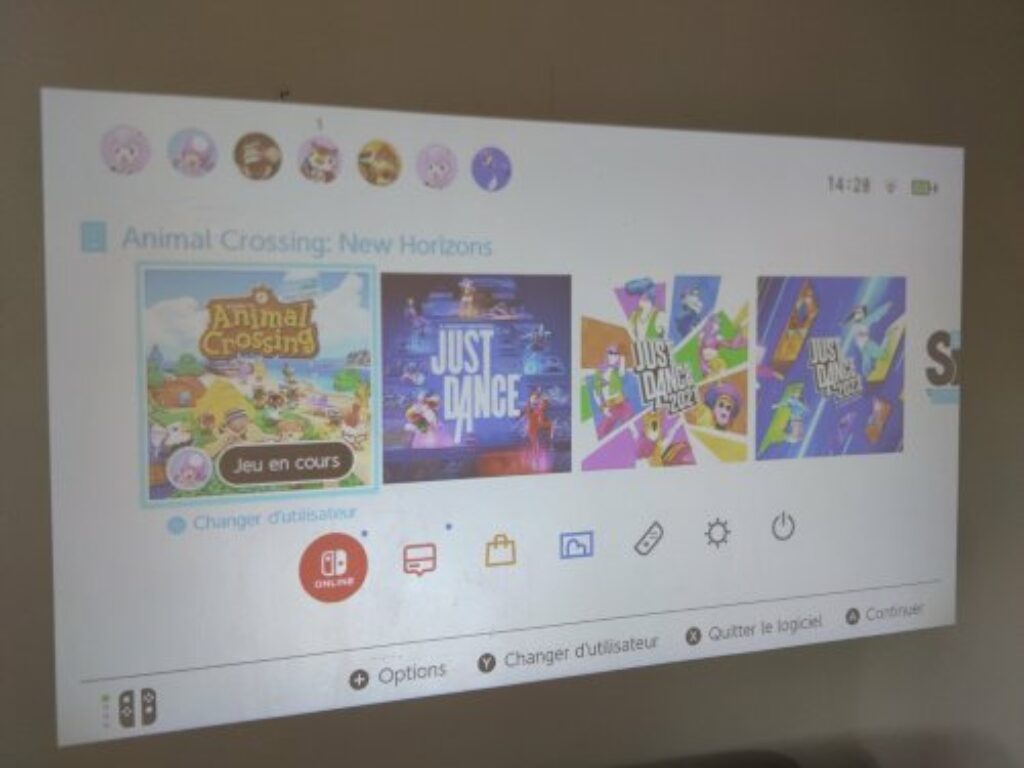 Le vidéo projecteur peut également projeter à l’écran ce qui lui est transmis par son entrée HDMI .. Ce qui peut donc etre utile pour des consoles de jeux , box tv , ordinateurs , lecteur de dvd ou blu ray .. J’ai donc testé cela en lui connectant une Nintendo Switch mais aussi un lecteur bluray ..