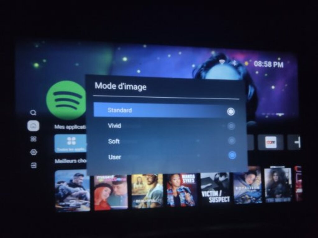 On a la possibilité de choisir entre plusieurs types d’affichage avec des niveaux de réglages de netteté , contraste , saturation prédéfinis ou alors de définir manuellement un type d’affichage