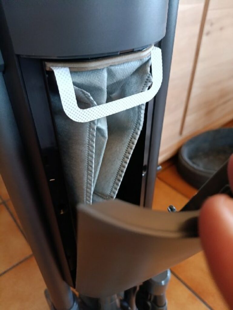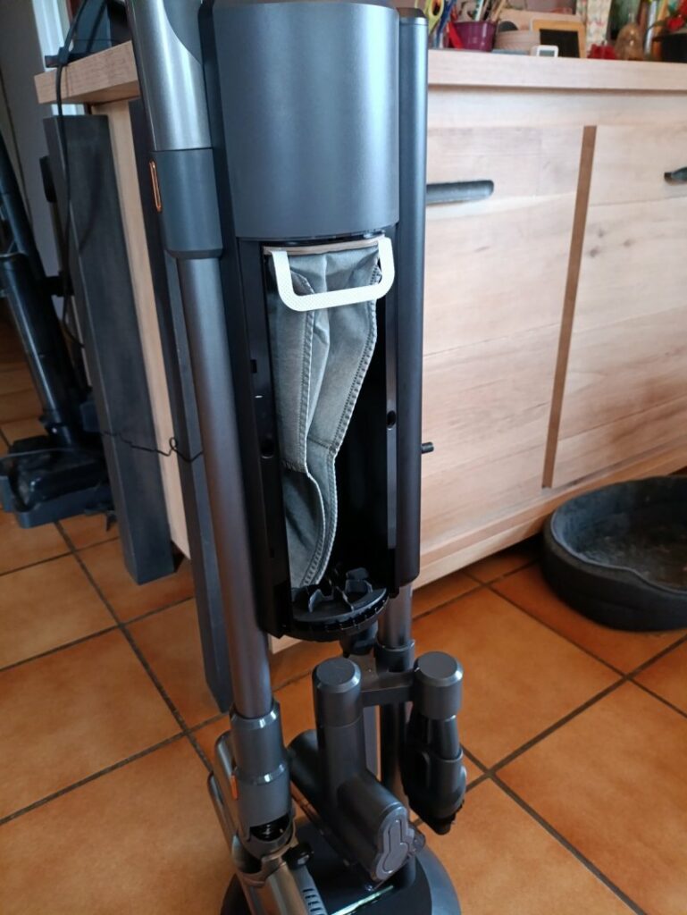 Bien sur l’inconvenient est que comme il s’agit d’un sac , cela va impliquer d’en racheter une fois les deux fournis avec l’appareil utilisés … J’aurais peut etre préféré du coté de la station un bac récupérateur amovible sans sac qui aurait ainsi évité l’achat de consommable.