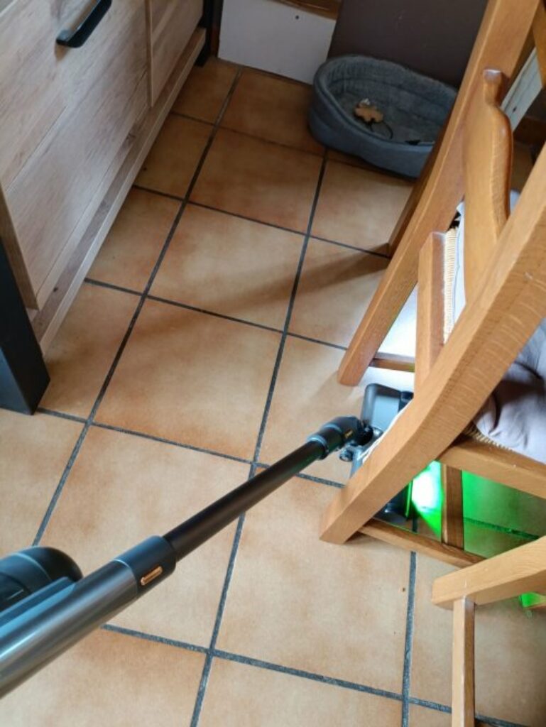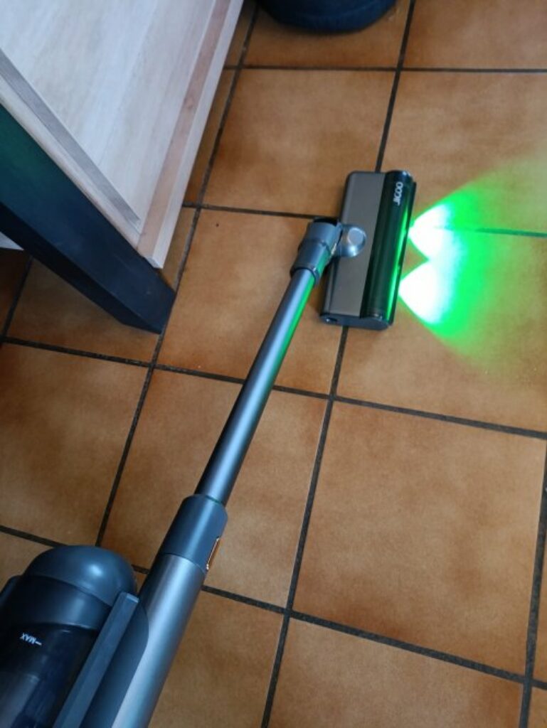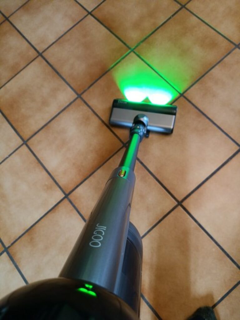 Et bien à l’usage le JIGOO V700 est bien pratique .. Sur la tête de nettoyage principale , les lampes vertes à l’avant permettent vraiment de voir les poussières et ca fait peur parfois – car si on a un sol sombre , on ne les voyait pas forcement 😉 ..
