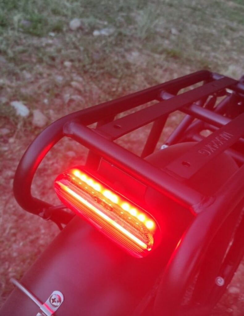 En ce qui concerne le phare avant, il y a un détail qui peut être légèrement gênant et inhabituel : il est monté sur le porte-bagages avant, lui-même fixé à la potence. …Quand on tourne , celui reste donc en face , et donc la lampe eclaire devant egalement et pas dans la direction vers laquelle on tourne …