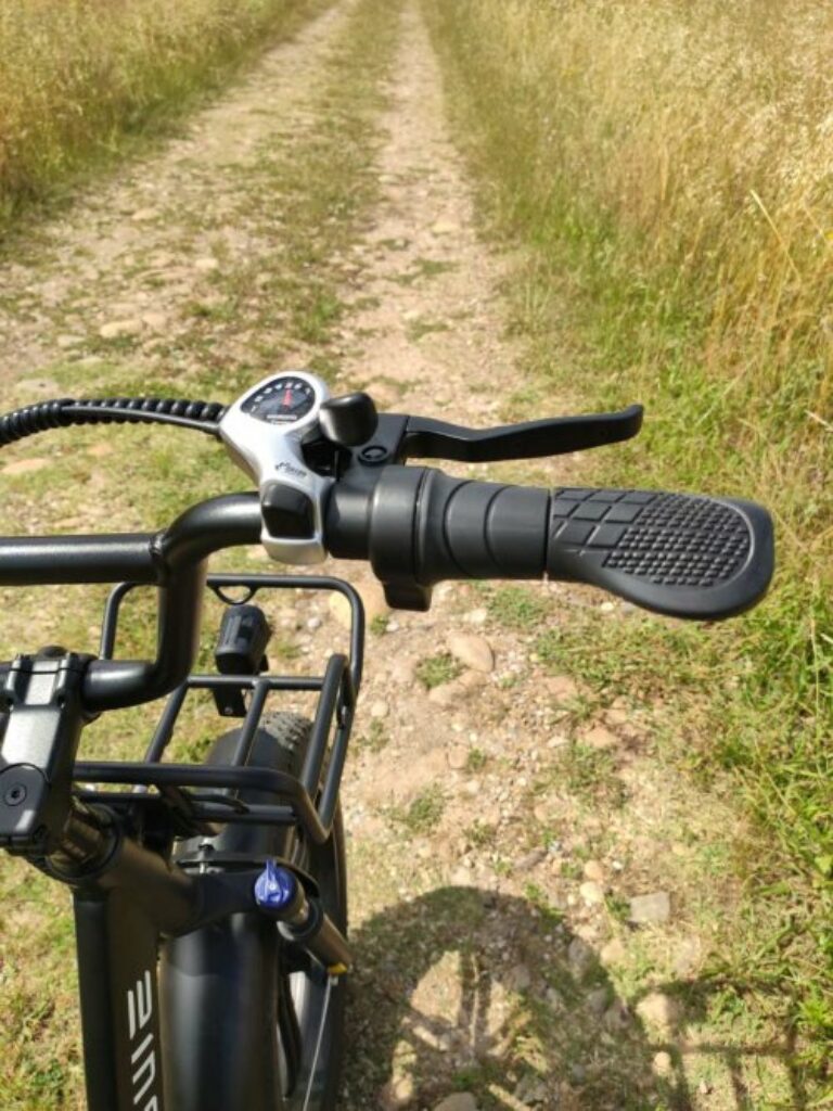 Sinon au niveau de la finition on pourrait aussi citer la poignée d’accelerateur qui n’est pas une simple gachette comme sur de nombreux vélos electrique , mais une vrai poignée qui tourne comme sur une moto ..