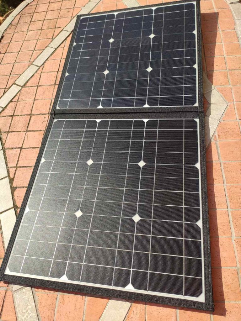Le Panneau solaire , se présente sous la forme d’un ensemble pliant de 2 panneaux de 42 x 42cm .. avec une poignée de transport ..