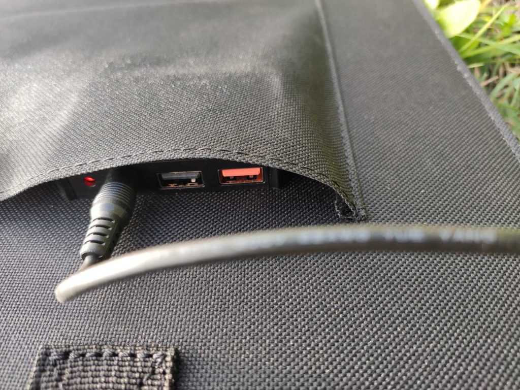 Concernant le panneau solaire , il s’agit d’un ensemble pliable et transportable delivrant jusqu’à 50 watts en sortie et proposant à la fois une sortie 12V mais aussi 2 ports en sortie USB.