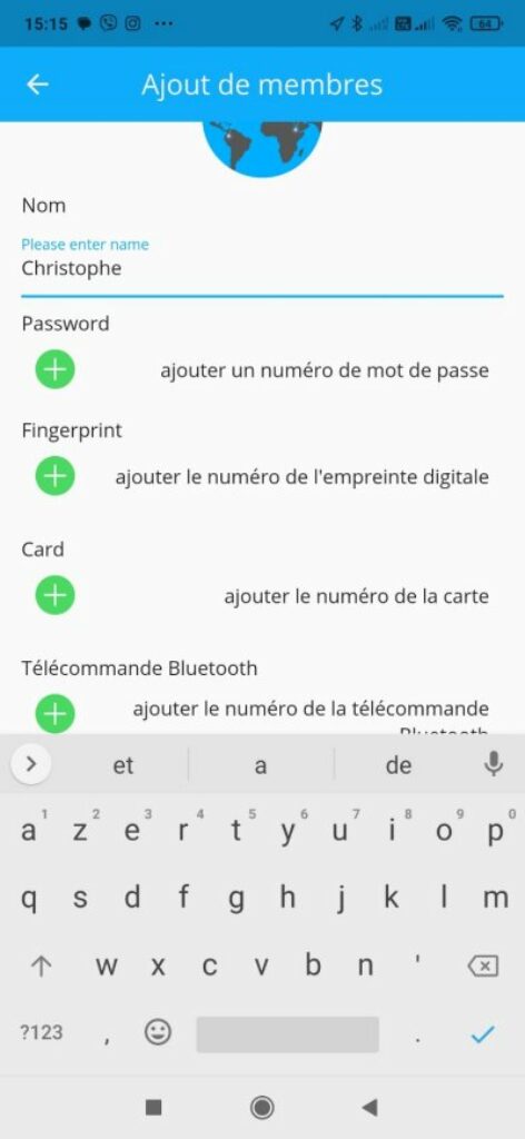 (l’application etant commune avec les autres serrures welock , il y a aussi la notion de numero de mot de passe , de telecommande .. qui n’ont aucune utilité )