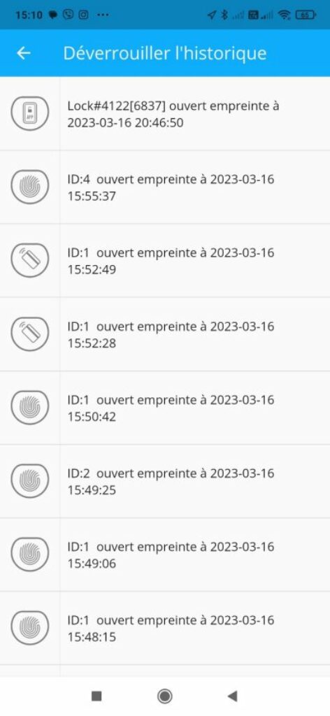 Mais l’application permet aussi d’acceder à l’historique des ouvertures ..