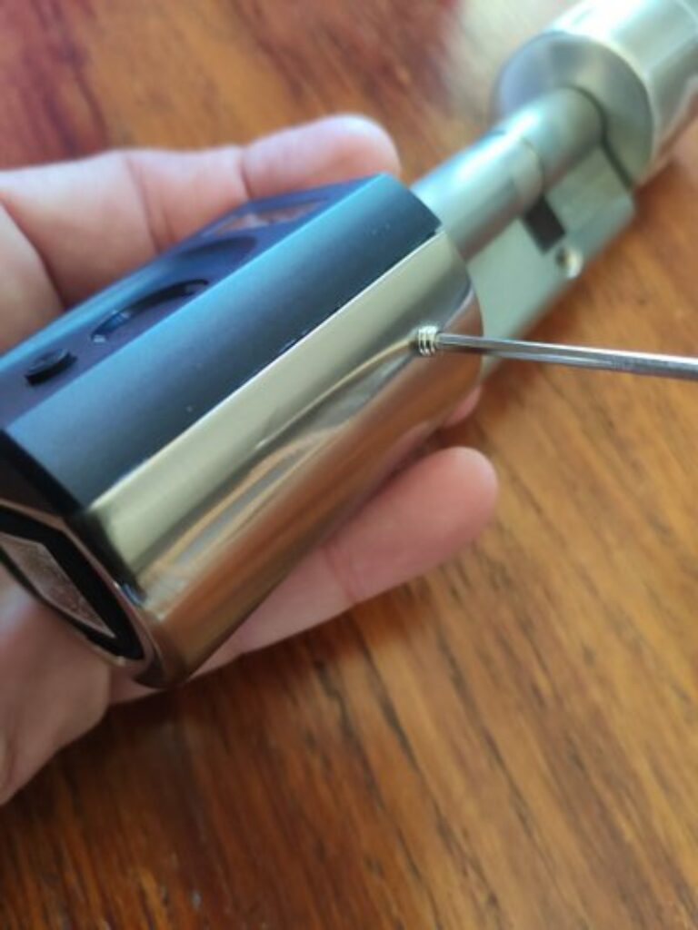 L’installation est tres simple , on retire de la porte le cylindre que l’on avait , et on place le welock touch 41 à la place .. On ajuste de chaque coté les longueurs