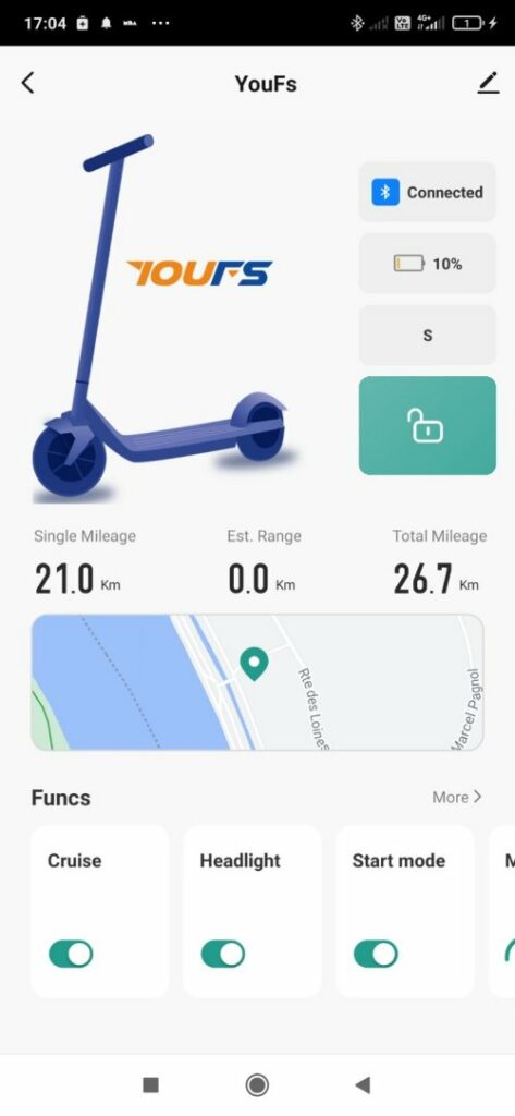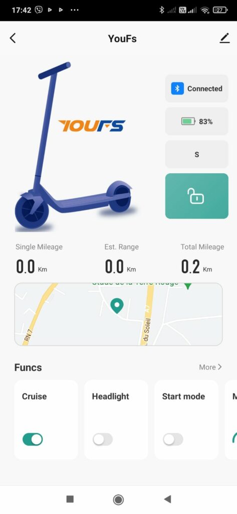 La trottinette dispose d’une application pour android et IOS , et si on veut pouvoir modifier les paramêtres de la MK083 , il faut donc le faire depuis celle ci .