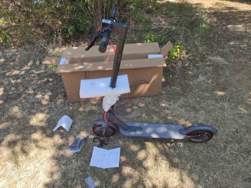 Le montage est donc tres rapide , il suffit donc de deplier la trottinette , de fixer la potence avec les vis fournis … La trottinette est déjà chargée