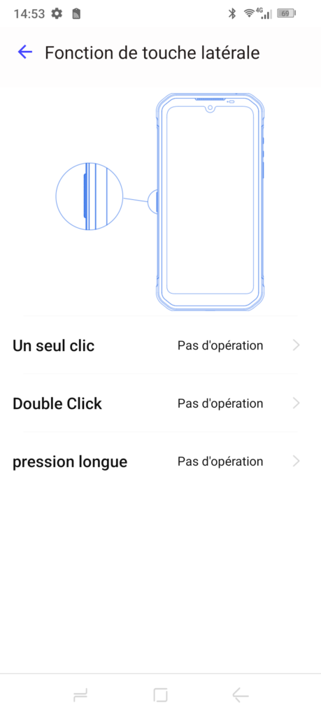 Tres pratique , le bouton personnalisable qui se trouve sur le coté de l’appareil .. On peut lui affecter 3 fonctions : une fonction avec un appui bref , une fonction avec double click et une fonction avec appui prolongé.