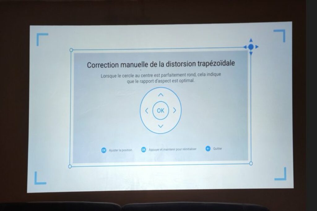 Dans l’écran de parametrage qui apparait allors on peut donc assez facilement ajuster l’image en intervenant sur les 4 coins de celle ci . cela prend quand meme 1-2 minutes à chaque fois , c’est un peu embetant ..