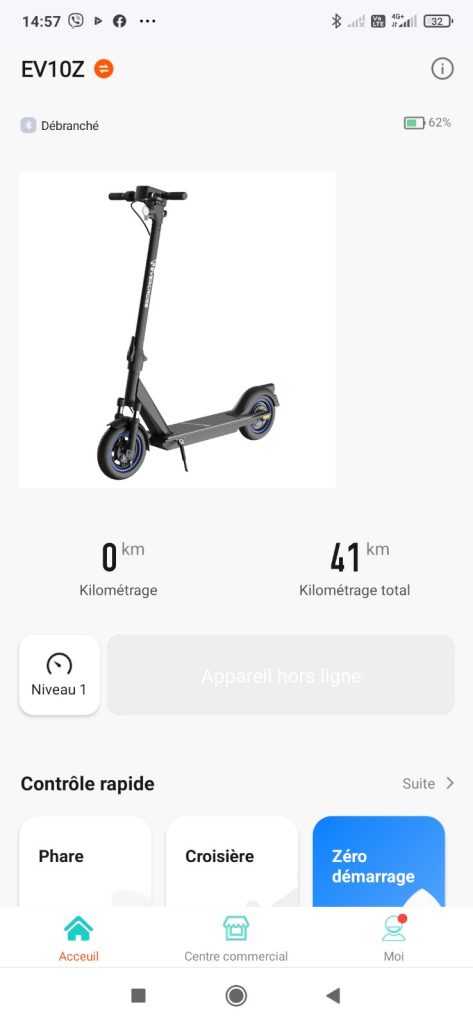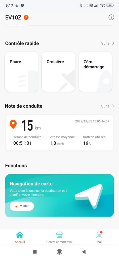 Mais bon pour ma part je trouve que la fonction essentielle de l’application c’est le verrouillage de la trottinette et le débridage de l’EV10Z..