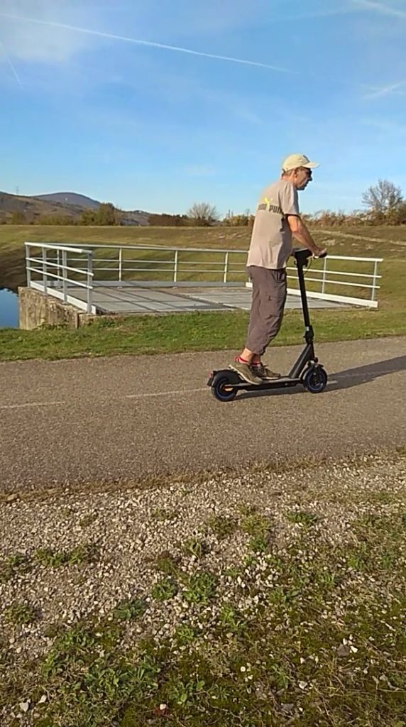 Au niveau de la puissance , sur le plat ou faux plats pas de probleme , ca roule sans probleme à la vitesse maximale … La documentation indique que la trottinette peut grimper des pentes de 15° …. Sans doute meme plus si on est léger … Mais effectivement faisant plus de 80 kgs , sur les petites pentes , ca monte à 12-14km/h mais si la pente devient plus raide il faut pousser avec le pied … Si on fait 50-60kgs là on pourra grimper bien plus facilement .. et sans doute des pentes plus raides..