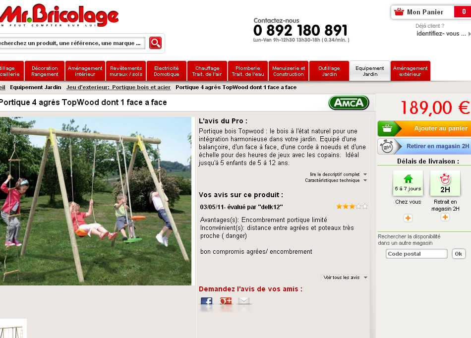 127 euros port inclu un portique en bois trigano pour 5 enfants