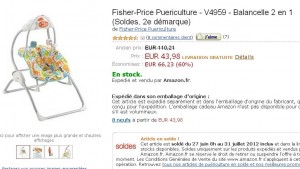 Si vous avez un bébé ou que vous en attendez un ou que vous désirez faire un cadeau pour une future maman , très bonne affaire dans les soldes sur amazon sur une balancelle fisherprice..