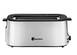 Offrant un très bon rapport qualité-prix, le grille-pain SIGNATURE TO4701IX est un appareil facile à prendre en main et performant. On aime tout particulièrement sa fente tout en longueur qui permet de faire griller des morceaux de baguettes et des tranches de pain complet. Ce grille-pain dispose d’un thermostat réglable utile pour sélectionner le degré de brunissement, ainsi que d’une fonction décongélation et d’un mode maintien au chaud. Côté nettoyage, son tiroir ramasse miettes vous fera gagner du temps. Il suffit de le vider dans la poubelle pour se débarrasser efficacement des résidus de cuisson.
