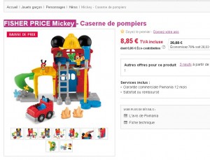 Bon plan jouet encore sur pixmania : avec la caserne de pompier mickey de fisher price à 8.85 euros …