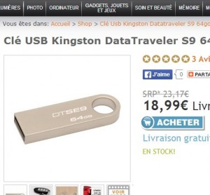 Une clé usb de grosse capacité pas chère sur zoombit : 18.99 euros la clé usb2 64go kingston datatraveller s9 ….