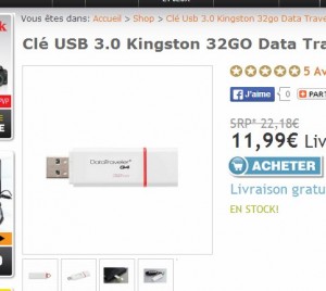 Clé usb3 32go kingston à moins de 12 euros livraison incluse