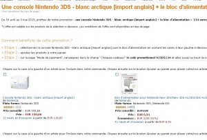 Petite promo sur amazon concernant une console nintendo 3ds … 134 euros la console avec un chargeur (qui se vend tout le temps à part ) …
