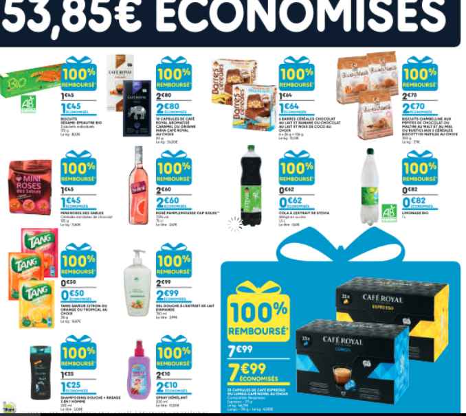 Les produits concernés DES CAPSULES NESPRESSO , des biscuits, des boissons , des glaces , des steaks de thons surgeles , gel douche …
