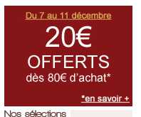 Cliquez ici pour voir les modalités de l’offre 20€ offerts pour 80 € d’achats