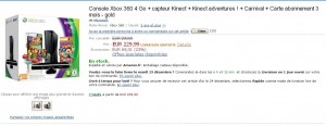 Alors que le pack xbox360 4Go kinect avec les jeux kinect adventures et Carnival se vend la plupart du temps plus de 250 euros , voici qu’amazon propose en vente flash le pack à 229.99 euros