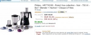 Si vous avez besoin d’un robot menager pour vous aider dans votre cuisine à couper, moudre, broyer …. Bonne affaire dans les ventes flash amazon , dans lesquelles se trouve le robot Philips HR7762/90 à moins de 60 euros port inclu..