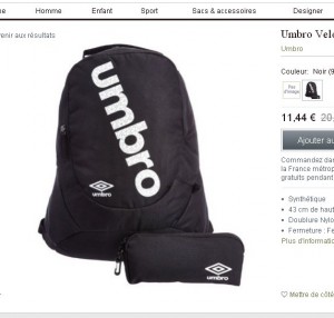 Sac à dos Umbro avec trousse pour 11.44 euros