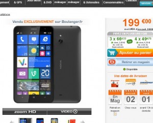 Vous voulez un smartphone windowsphone grand ecran ? Très bon prix sur le site boulanger.fr pour le nokia lumia 1320 qui est proposé à 199 euros .. Smartphone qui semble vendu au mieux sur amazon à 267 euros mais aussi pres de 300 euros ailleurs..