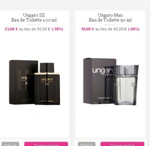 On peut voir l’eau de rochas fraiche 100ml pour femmes à 36 euros contre 60.9 chez sephora, eau sensuelle de rochas 100 ml à 34 euros contre 65 euros chez sephora, Ungaro III 100ml pour hommes à 23 euros contre 56.9 chez sephora, Rochas Man 50ml à 29 euros contre 46.9 euros …