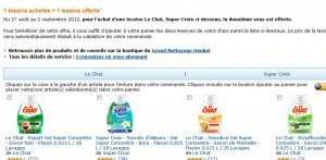 Nouvelle offre lessive sur amazon : avec 1 lessive offerte pour 1 acheté dans une selection de produits le chat et super croix ..