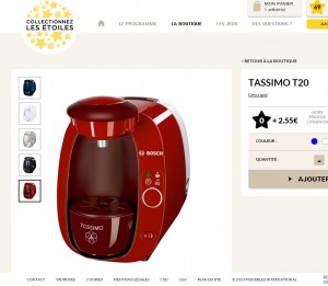 12.55 euros seulement la machine multiboisson tassimo T20 sur le site collectionnez les etoiles de carte d’or ..