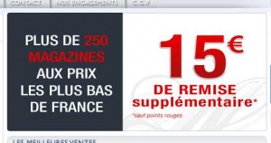 15 euros de remise sans minimum sur des abonnements à des magazines