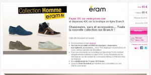 15 euros le bon d’achat d’une valeur de 40 valable sur le site Eram.fr