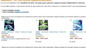 20% de remise sur l’achat de 2 pack de lames gillette Mach3
