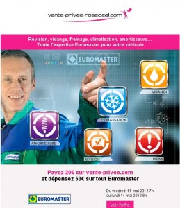 remarque : il est indiqué que le bon sera valable dans plus de 300 centres en France , cependant il n’est pas certains que tous les euromaster de France acceptent bien le bon, il est donc conseillé de verifier sur le site venteprivee , si le centre de l’enseigne dans lequel vous comptez aller est bien indiqué ..