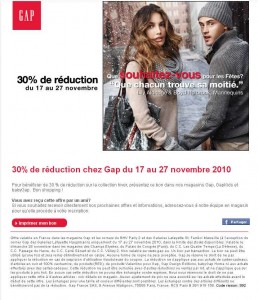 30 pourcent de reduction dans les boutiques gap du 17 au 27 novembre