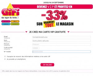 Pour cela il faut remplir un formulaire en ligne pour obtenir sa carte Vip Gifi …