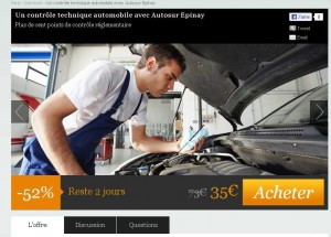 Une offre locale mais qui peut interesser quand meme pas mal de monde à savoir tous ceux qui habitent dans le nord de la region Parisienne .. Si vous devez faire d’ici le mois de novembre le controle technique à votre voiture, offre tres interessante du coté du site lookingo : en effet on peut acheter pour 35 euros un bon donnant droit à un controle technique dans un centre Autosur à Epinay sur Seine… Controle qui coute generalement pas loin du double ..