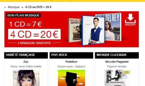 Home » vie pratique » 4 cd pour 20 euros port inclus 4 cd pour 20 euros port inclus Bons plans astuces 7 mai 2014 vie pratique SaveSavedRemoved 0 Bon plan cd sur le site de la fnac avec 4 cd de musique pour 20 euros livraison incluse.. Voir tous les cd concernes
