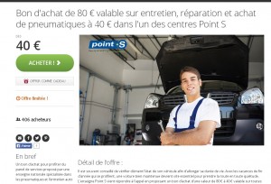 40 euros le bon d’achat de 80 à utiliser dans un centre auto point S de l’ouest de la France