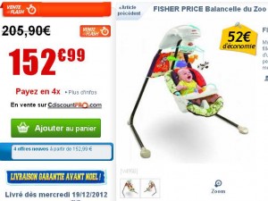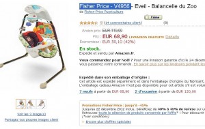 68 euros la balancelle pour bebe Fisher Price contre entre 140 et 200 ailleurs