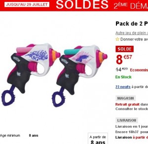 8.57 euros le pack de deux pistolets nerf rebelle sur le site de la fnac … Interessant car à l’origine cette boite de jouets nerf se vendait le double …