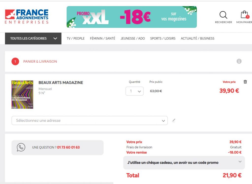 Mais en plus , jusqu’au 16 septembre , on bénéficie d’une réduction automatique supplementaire de 18€ dans le panier de commande , le prix de l’abonnement passe donc à seulement 21.9€ !