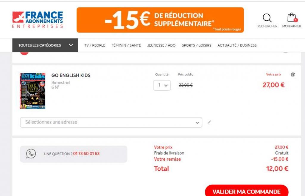 13€ en profitant d’une remise immediate de 15€ quand on met l’abonnement dans le panier de commande