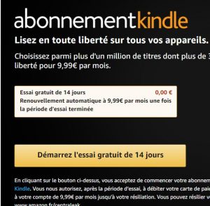Abonnement Kindle gratuit pendant 14 jours ( plus d’un million de livres à lire)