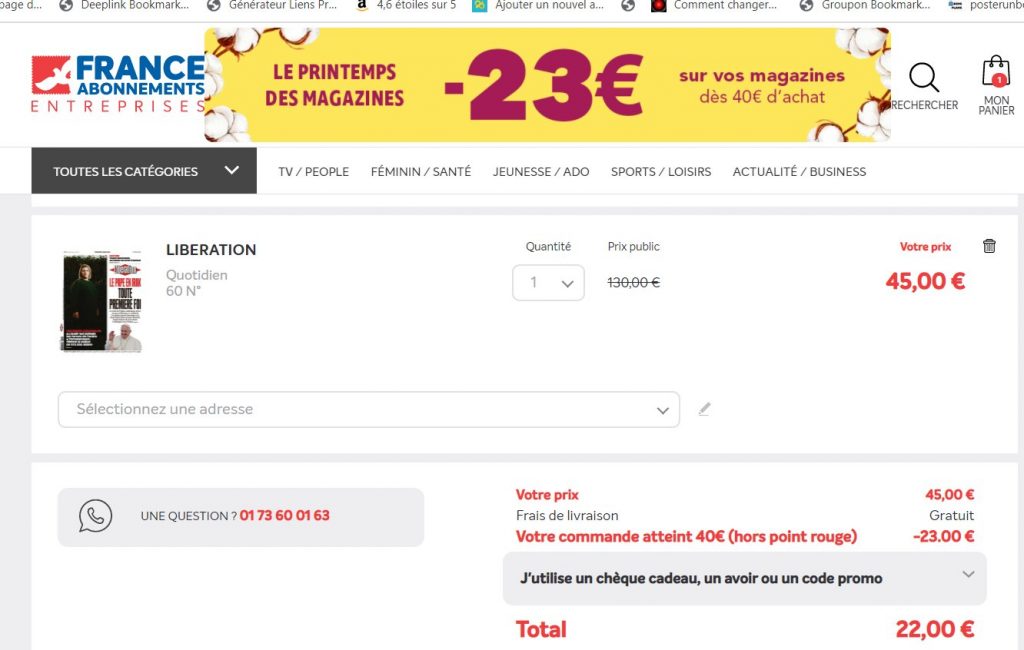 Mais en plus il y a 23€ de remise immédiate quand on met un abonnement dans le panier de commande.. Le prix va donc passer à 22€ …